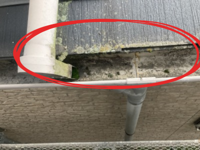 雨樋の確認致しました!カビがすごいですね!下は黒カビが発生していますね!雨が屋根から落ち雨樋に行くのでゴミなど障害物がある場合雨がつまり雨樋の機能が果たせなくなる場合があるので弊社は確認し高圧洗浄をかけてカビや汚れを落としていきます!!