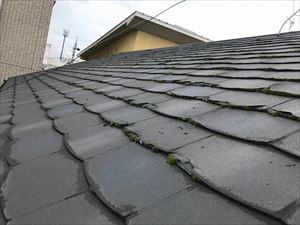 まずは全体に見ていきましょう!!全体にコケがすごくカラーベストもボロボロですね!!全体に色褪せしています!反りなどのも発見いたしました!