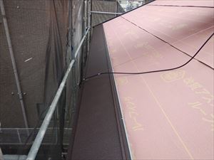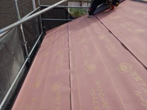 防水紙を貼る付けていきます!ロール状になって幅を合して調整していきます!ステープルなどで間隔を少しずつ開けて打っていきます!!
