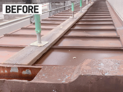 工場屋根の材質は瓦棒屋根で、築年数の経過により表面の塗装が劣化し錆が進行していました。