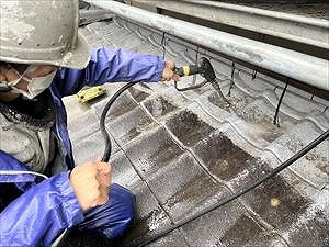 屋根塗装など外壁・ベランダも同様! 特にセメント瓦は塗膜が弱いので高圧洗浄がかなり大事になってきます!!汚れを徹底的にとってきましょう!!