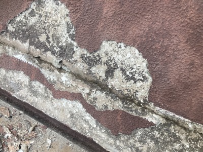 屋上パラペットのひび割れや、パラペット部分の全体の塗膜の剝れ下地のかなり大きいひび割れがかなりひどく!