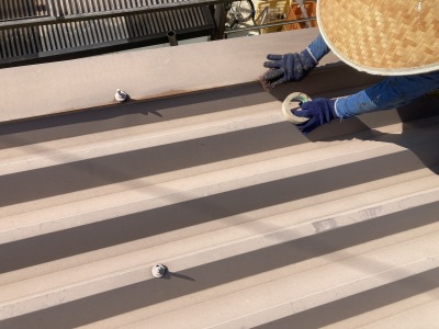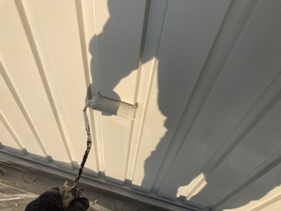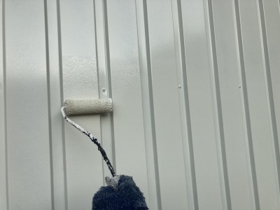 ローラー作業で折板屋根を屋根塗装で密着性を上げていきます!!