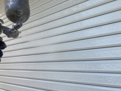 シャッターのように凹凸の多い部分には吹き付け施工が適しています。塗料が均一に行き渡り、ムラなく仕上がります! ローラーでは塗装はできません!
