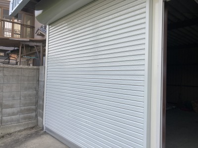 外壁のガルバリウム鋼板部分も同塗料で施工し、美観と防錆性を両立しました。吹き付けによるシャッター塗装も実施し、施工前後で大きく印象が変わりました。