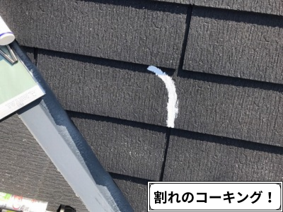 外壁や屋根の劣化調査で見つかった ひび割れ部分やカラーベストの割れ目 には、雨水の侵入を防ぐために コーキング材(シーリング材) を使用して補修を行います。