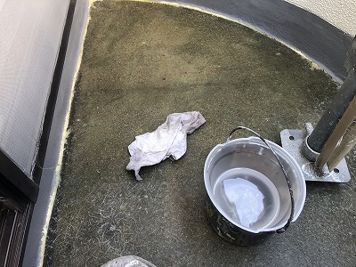 ベランダなどバルコニーな人が歩く場所なので塗膜が剥がれるので、タフシールトップ摩擦性があるのFRP防水にかなりいいです!