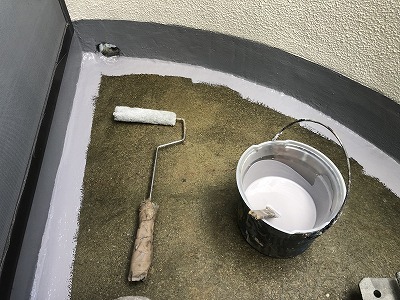 トップコートを塗布していきます!タフシールトップ1000 は、FRP防水などの防水層を保護するためのトップコート材です。