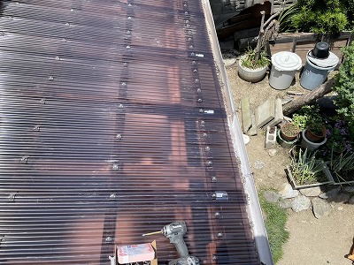 ポリカーボネート波板+正しい穴あけと固定、必要に応じた下地の再生・木部塗装までワンストップで対応いたします。