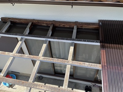 特に昔の住宅など下地が木製を使われているのではないでしょうか?その場合は弊社は塗装を致します!(波板工事と塗装費用は別でかかります。)