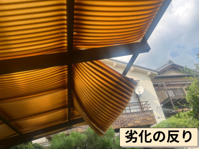 同じ屋根でも金属屋根と違い、樹脂系素材は紫外線による劣化が進むため、見た目の色褪せと割れなど劣化で反りなどが発生している場合は耐久性も少しずつ下がっています。