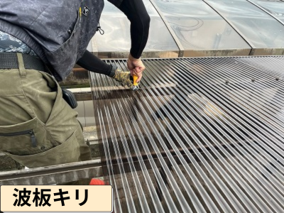 軍手・耐切創手袋を着用。波板の切り口は想像以上に鋭く、指先のスパッと切りが多発します