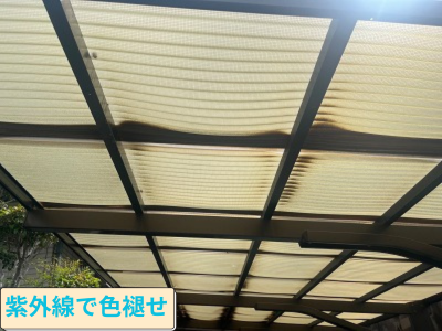 生駒市にて劣化した波板交換カーポートテラスの色褪せ交換時期は?