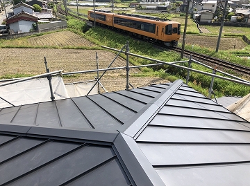 雨押え板金と棟板金の施工が終わりますと、施工完了になります。