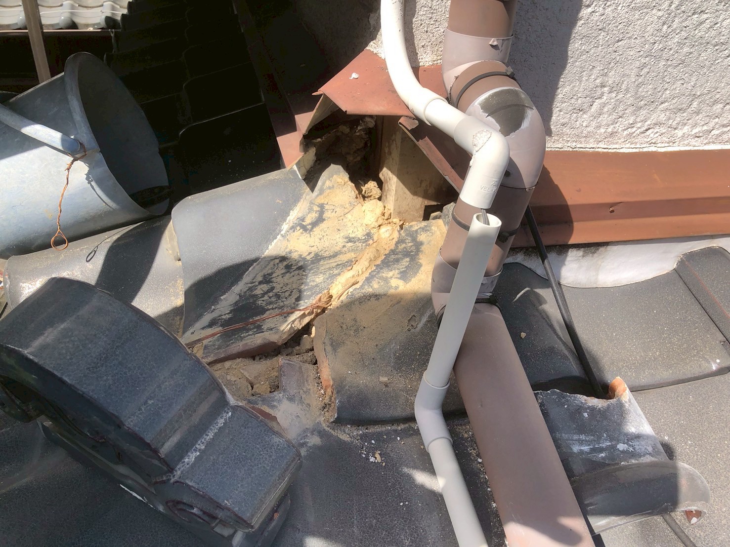 ▼【1】既存棟瓦・漆喰の撤去