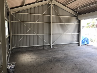 小牧市にお住まいのお客様より「車庫の見た目が悪くなってきて、雨などが侵入してくるようになった。まだまだ使いたいので修理したい」とのご相談がありました。
