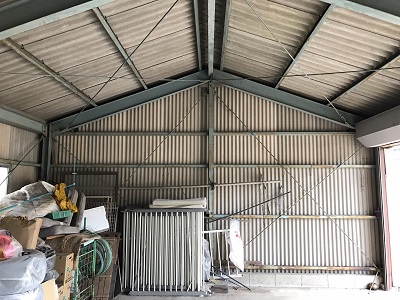 今回の車庫のような鉄骨構造の建物にとっては、耐候性とコストパフォーマンスを兼ね備えた最適な屋根材です。