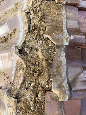 まず、棟の下にある「地瓦(じがわら)」の隙間が非常に広くなっていました。