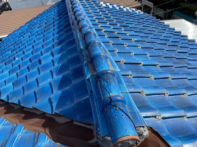 屋根には勾配があり瓦が全体にずってきており、棟瓦の勾配もなくなりつつありました。