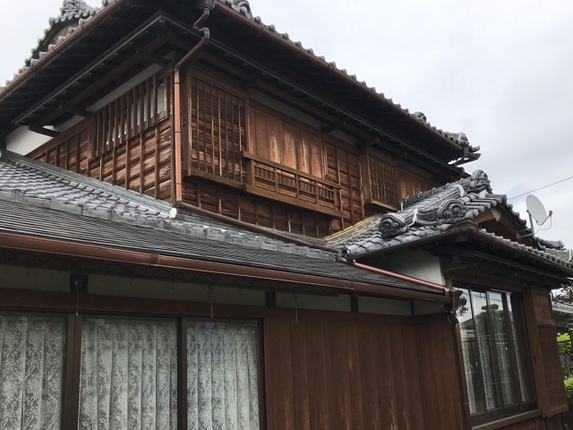 名張市 外壁塗装 杉板外壁、破風、軒天、銅板塗装工事