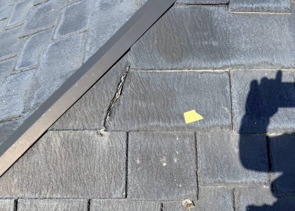 現地へお伺いして屋根の点検を行ったところ、確かに屋根のスレートに多数のひび割れや欠けが見られました。