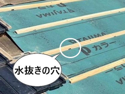 瓦を固定する桟木には、水抜きの穴があいているものを使用しました。