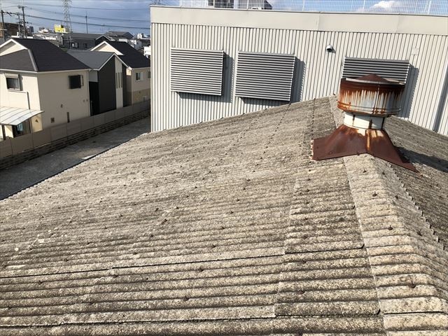 八尾市のスレート屋根工場で雨漏れの修理をカバー工事しました