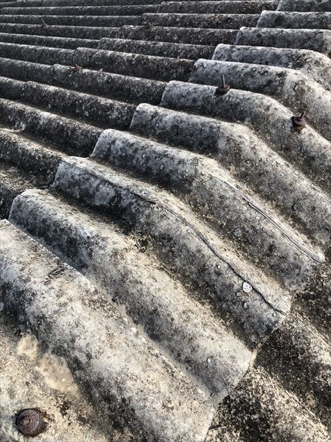 津熊鋼建のメーカーでルーフ88型と言われます古いスレート大波にぴったり合う屋根材でカバー工事しました。メンテナンスの要らない屋根材で雨漏りも防ぐことができ喜んでいただきました。施工は長いビスで鉄骨製のCチャンと言われる垂木に直接ビスで止めていきます。カバー工法ですので廃材も出ず低コストで施工出来ました。保証も10年間は雨漏れ保証致します。