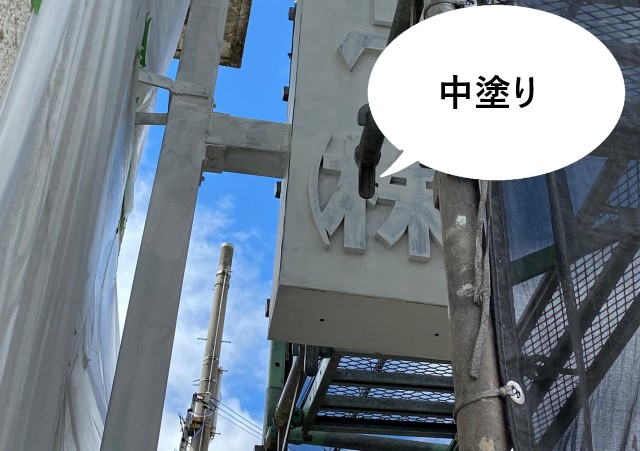 袖看板の塗装工程は、下地処理・ケレン作業→下塗り(サビ止め)→中塗り→上塗りです。