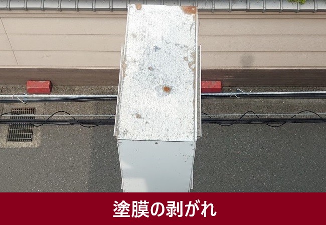 こちらのように塗膜にひび割れや剥がれが起れば、素地が露出している状態です。そこに水や空気が触れると表面が酸化し、赤サビが発生してしまいます。