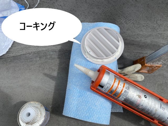 新しい丸型ガラリの周囲にコーキングを打って、しっかりと固定し取付けました。