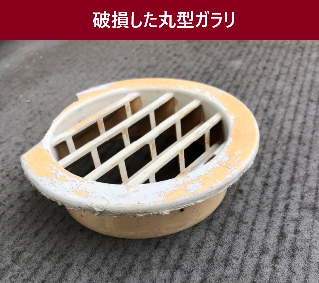 この状態では、虫や鳥・雨などが浸入してしまいます。ガラリ内部に雨が入り込むと、建物の劣化を促す原因にもなるので早めにガラリの交換が必要です。