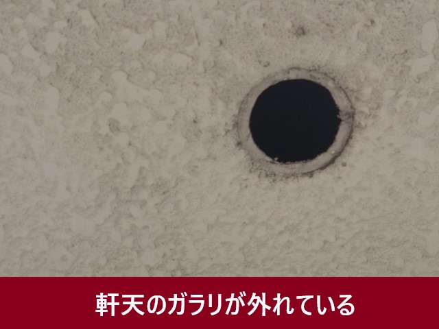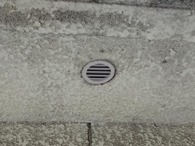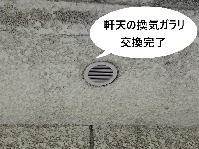 他にも軒天に取付けられている換気ガラリも、劣化で一部が割れて外れている状態でした。