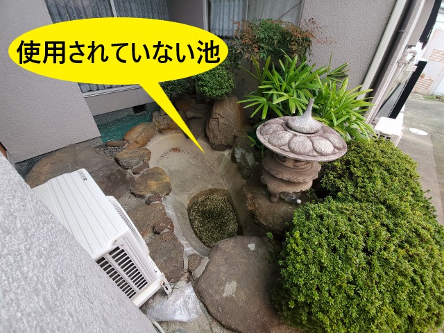 中庭の使用されていない池や、植栽などの清掃や管理が大変。 |