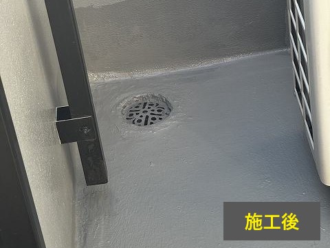 ベランダの床もツヤのある防水層が完成して、見た目も美しく、機能性もバッチリ!地上から見てもキレイに仕上がって、お客様にもとても喜んでいただけました♡
