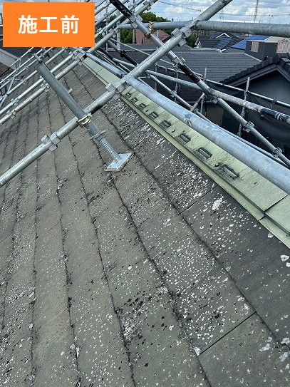 調査の結果、屋根はスレート材が使用されており、次のような劣化が見られました。