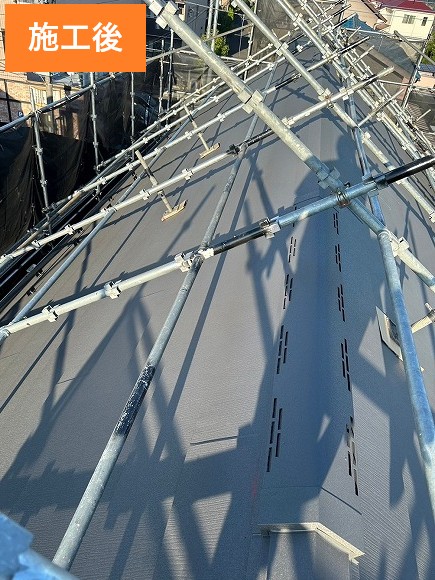 屋根と外壁を同時施工することで、足場を共用しコストも削減し、お客様にも大変ご満足いただける仕上がりとなりました。