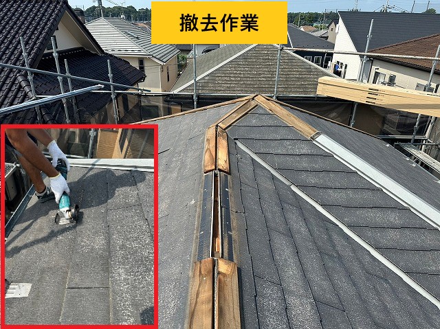 まずは古い棟板金と貫板、雪止め金具をすべて外します。