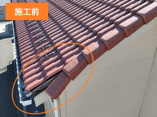 工事ではまず既存のケラバ瓦を丁寧に取り外し、破損しないよう慎重に保管!