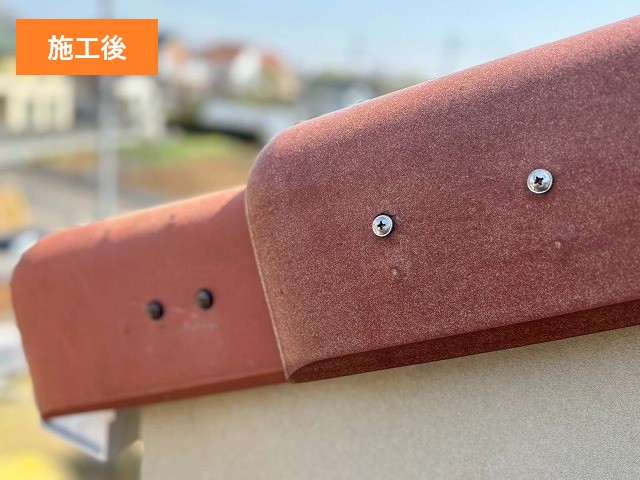 内外の両方向からしっかり固定することで、ケラバ瓦の安定性が大きく向上し、長期間安心して使える状態へ仕上がりました。