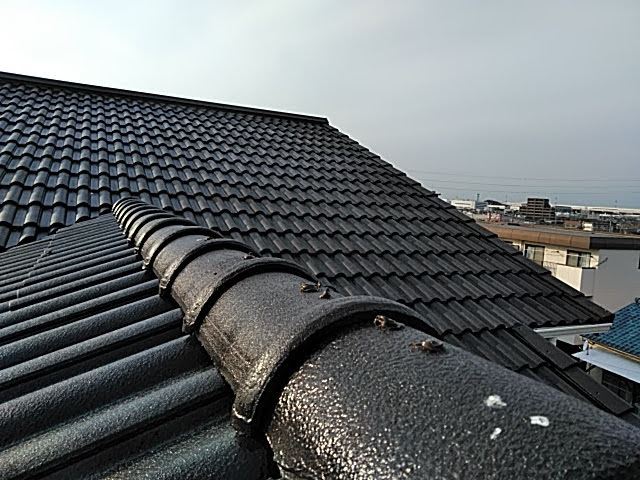 セメント瓦とは思えないツルツルの仕上がりにがっちりとした棟板金に仕上がりました!