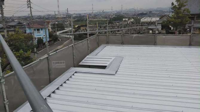 名古屋市守山区にて折板屋根の塗装と雨樋交換工事を行いました。