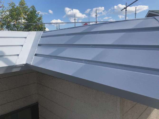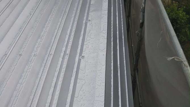 今回シルバーで塗装しましたが折板屋根という事もあり金属屋根にすごく合った色ですね。