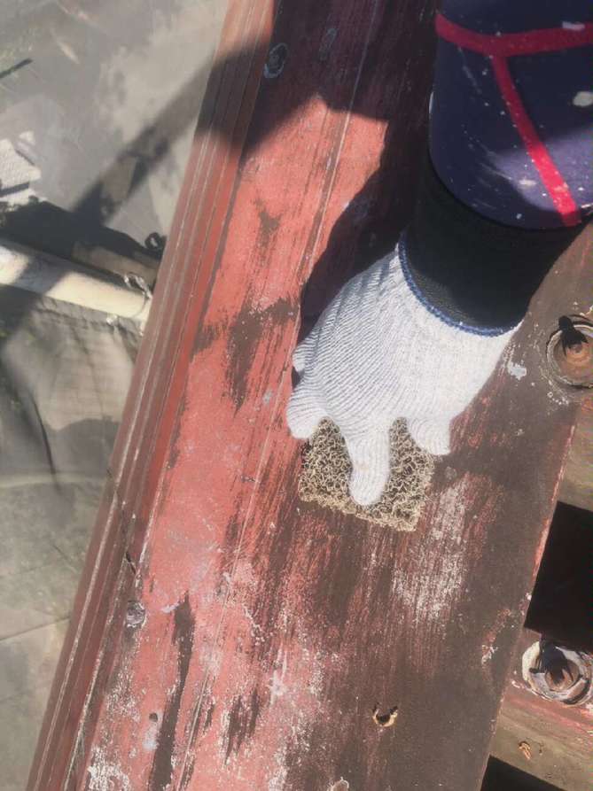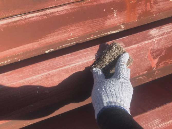 下塗りをする前にまず表面を削り塗料が乗りやすいようにしなければなりません。