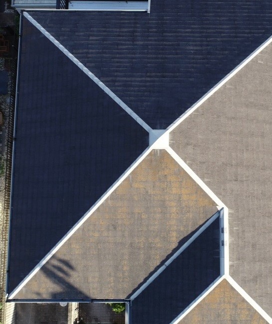 名古屋市緑区 屋根カバーで劣化したスレート屋根からガルバリウムの屋根にビフォーアフター