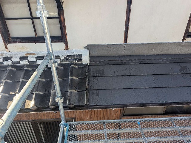 今回はこの部分の劣化も進んでいたため、新しい板金に交換し、瓦も丁寧に元の位置へ戻しました。