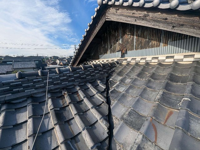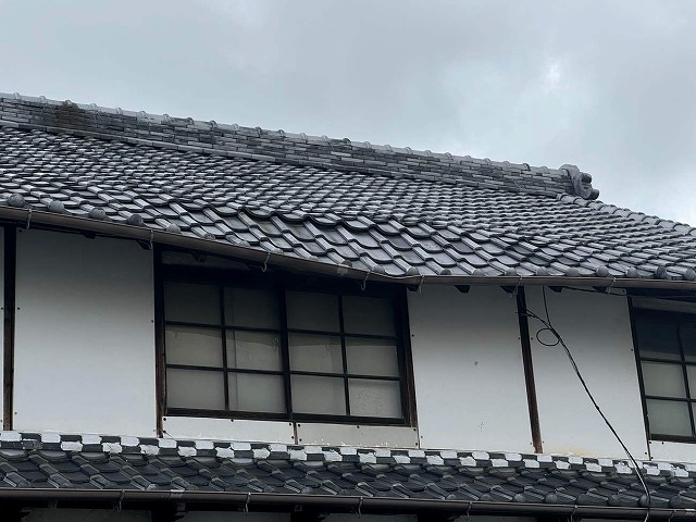 屋根全体を見てみると、台風の影響などで瓦がズレている箇所がたくさんありました。