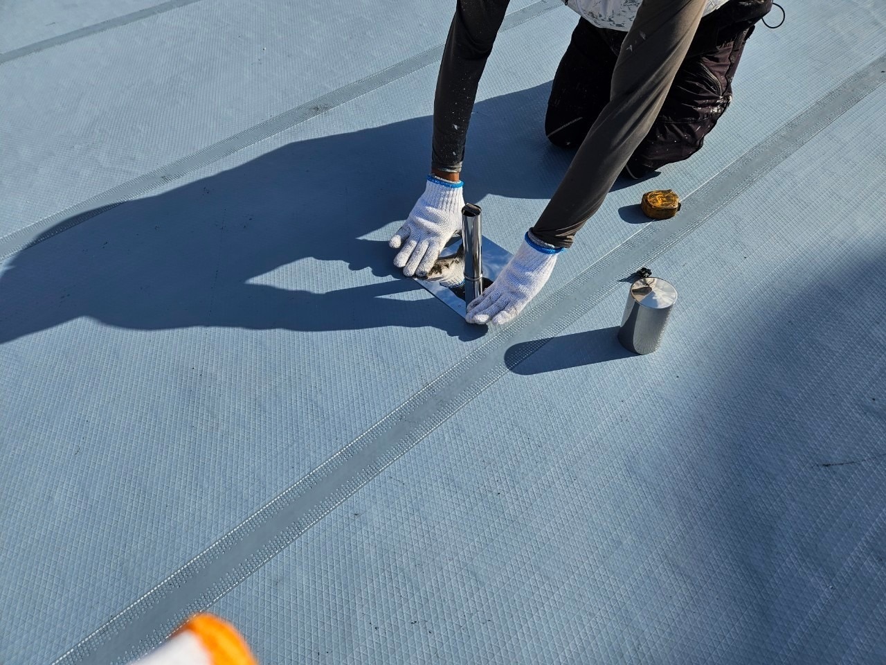 このように屋上全体にわたって劣化が進んでいたため、今回のご依頼では部分的な補修ではなく、既存のシート防水をすべて撤去し、新たに「通気緩衝工法(つうきかんしょうこうほう)」でウレタン防水を施すことになりました。