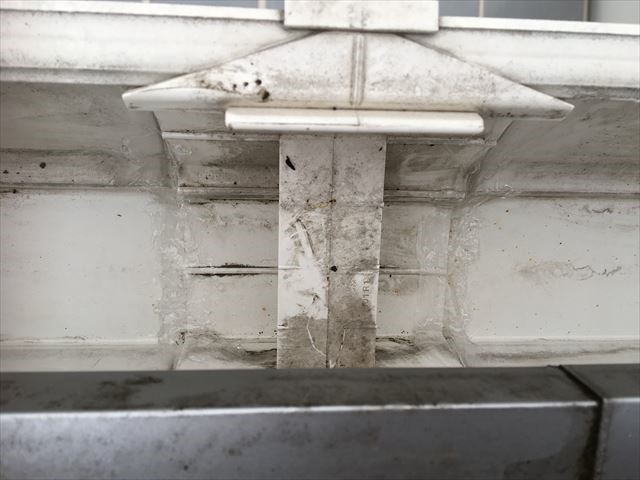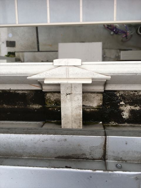 雨樋の継目から、水が垂落ちているので