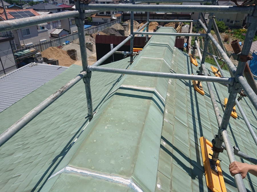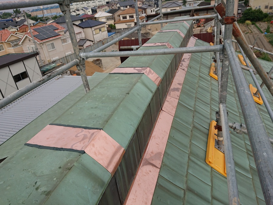 岸和田市H様邸の銅板晒し葺きの屋根の雨漏り修理の施工事例です。